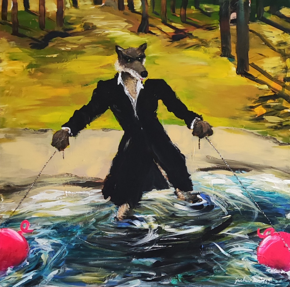 "Ulven i gul sweater" 120*100 cm solgt